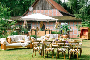 „Bei einer Gartenhochzeit gibt es sehr viel zu beachten und zu organisieren“, verrät Nadine Metgenberg, Gründerin und CEO von „Fine Weddings & Parties“, einer der wohl exklusivsten Hochzeitsagenturen Deutschlands. „In erster Linie braucht man etwas ganz Wesentliches: Strom!“ Wie viele Stromquellen sind nötig und wo werden sie angebracht? Wir übernehmen diese Herausforderung gerne! Schließlich wäre ein Stromausfall am großen Tag der Gartenhochzeit nicht gerade erstrebenswert. Und noch ein weiteres Grundbedürfnis muss erfüllt werden: „Man sollte sichergehen, dass genügend Toiletten zur Verfügung stehen. Ebenso sollten reichlich Parkplätze vorhanden sein. Alternativ bietet sich ein Shuttleservice an.“ Auch das, so die Expertin, überlässt man im besten Falle einem Profi. Das spart eine Menge Stress!