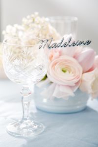 Süße Idee statt Namensschildchen: Einfach den Namen ans Glas hängen. Table: Confetti & Cream, Fotos: Julia Löwe