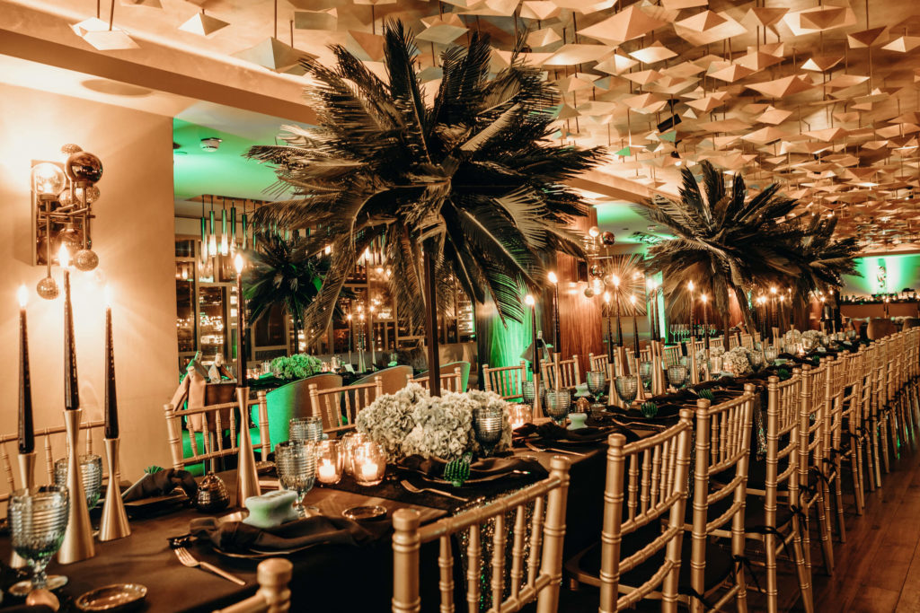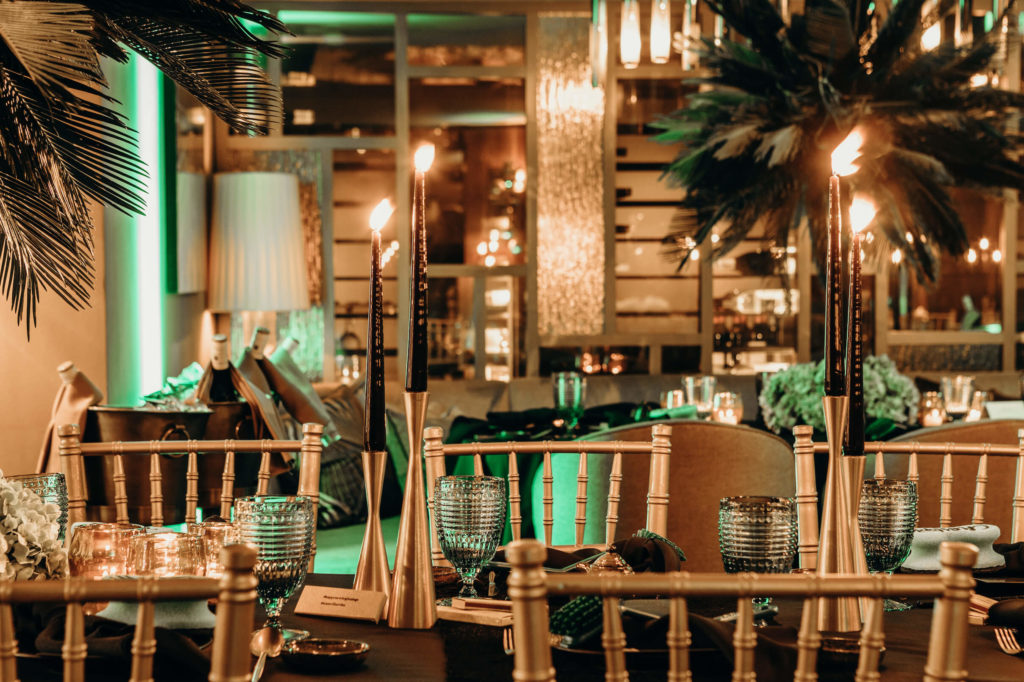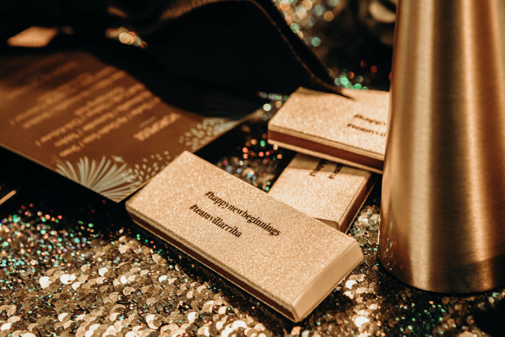 Und so kamen Freunde, Familie, Kunden, Partner und viele andere liebe Menschen an einer hübschen Tafel zwischen goldenen und grünen Accessoires, einem Meer aus Palmen, Blüten und Kerzen zusammen, um zu lachen, tanzen und gemeinsam zu feiern. Los ging der Spaß aber schon lange vor der Party. Nämlich beim Versenden der Einladungen, die natürlich keine gewöhnlichen Einladungen waren. Nein, es waren Einladungsboxen. Das wichtigste Utensil der Box: ein grünes T-shirt mit dem Schriftzug „Villarriba“. Die Aufgabe: Gestalte dein persönliches Villarriba-Outfit für den Partyabend. Und eines sage ich euch: Unsere Gäste waren so unglaublich kreativ. Von Strass über sexy Cut-outs bis hin zum Fransenlook war alles vertreten.
